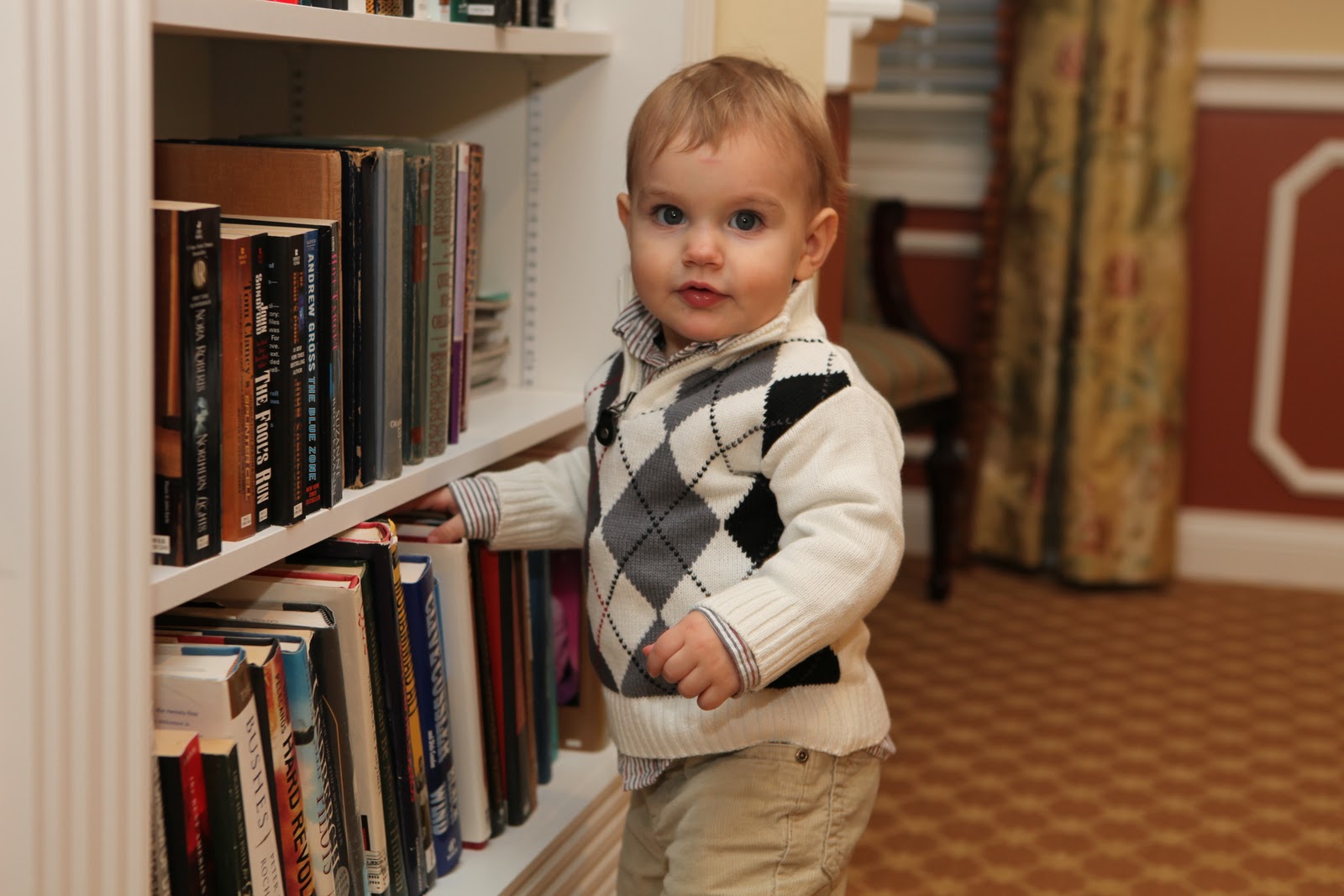 He loves to sit on Daddy's lap and help him study. He is studying pediatrics, soooo... |
